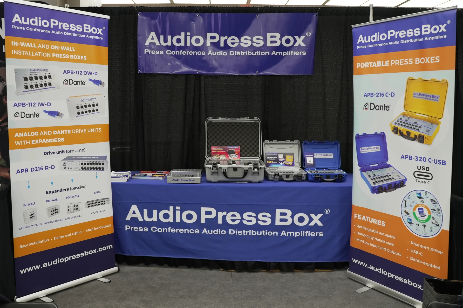 AudioPressBox presented next generation press box solutions offering a further expansion of its product line through integrating DANTE and USB C into in-wall, on-wall in portable, install and on-stage models. These models further reinforced the leadership position of AudioPressBox as the world leader in press conference related technologies.