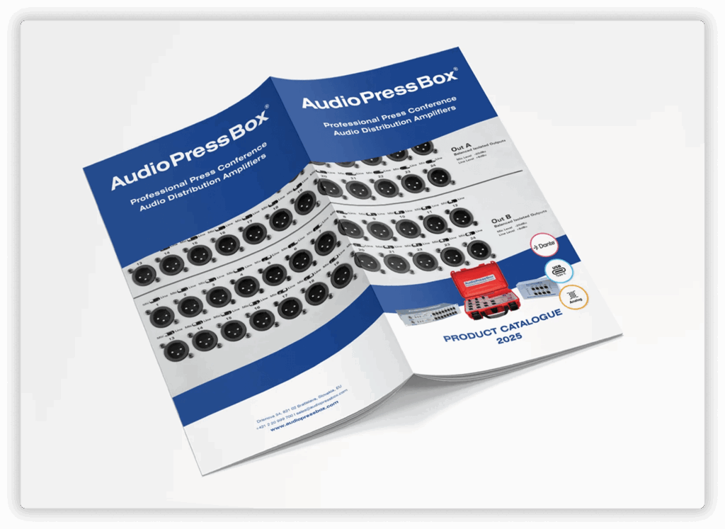 Dies ist der aktuelle AudioPressBox-Katalog für das Jahr 2025. Sie enthält alle grundlegenden Informationen über unsere Geräte. Für weitere Informationen kontaktieren Sie uns bitte unter: sales@audiopressbox.com