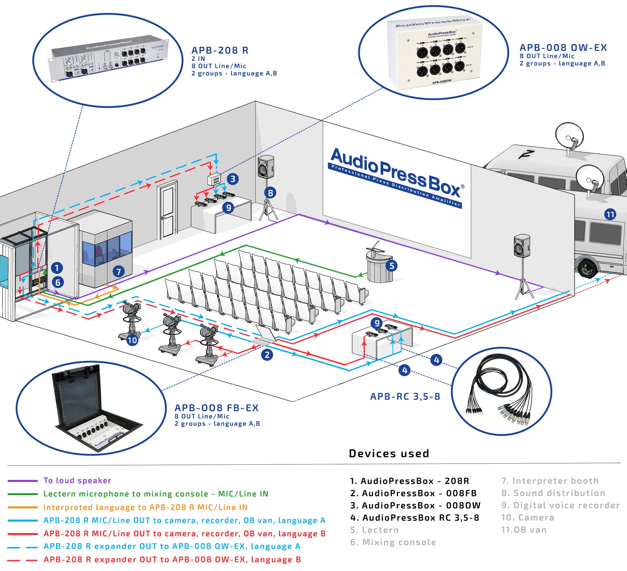 Die Ausgaben sind in Kanal A und Kanal B unterteilt, sodass sie auch für zweisprachige Konferenzen verwendet werden können.