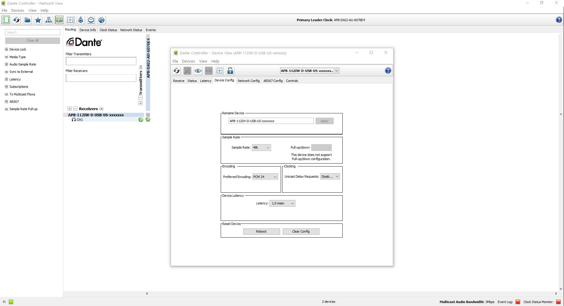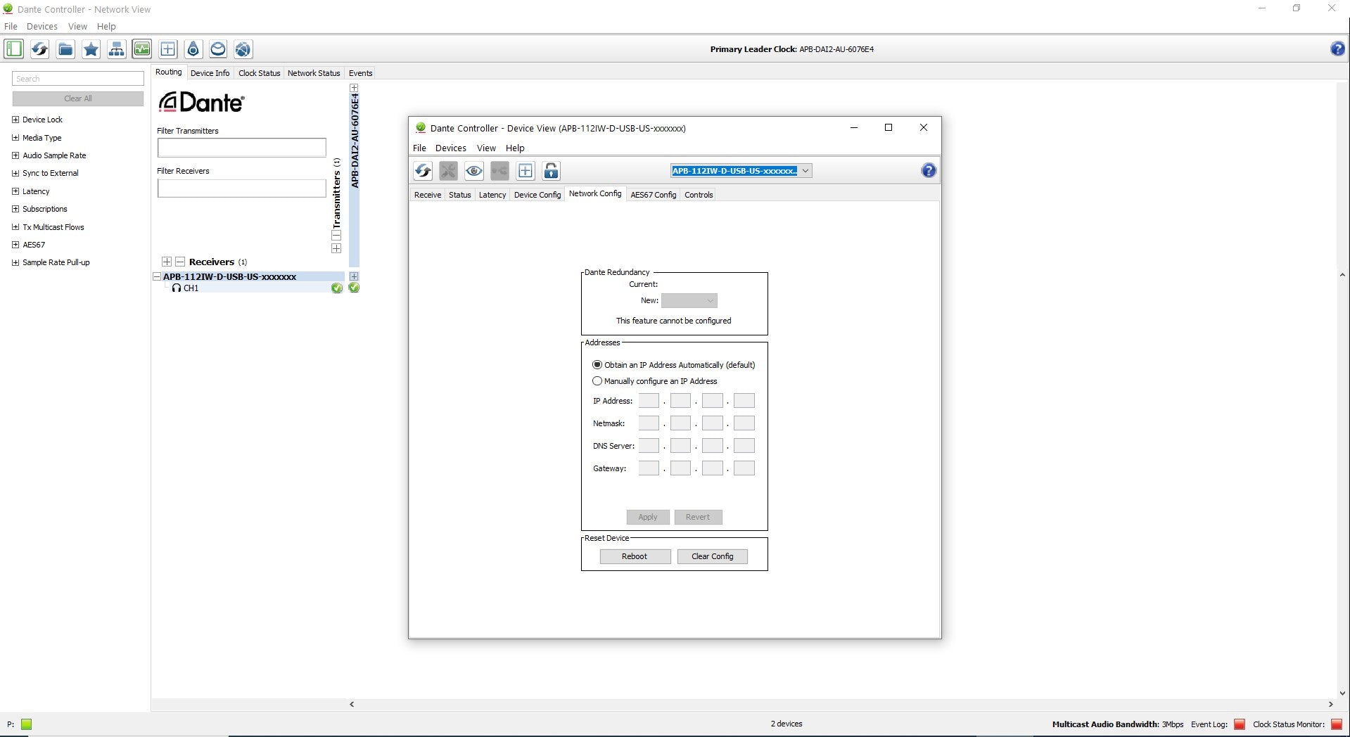 - Das Gerät wird nur über PoE aus dem DANTE-Netzwerk mit Strom versorgt