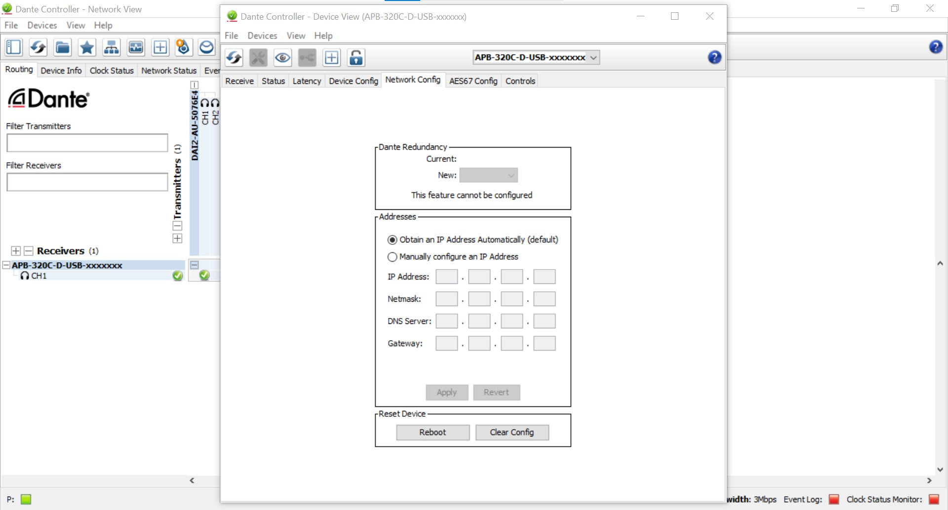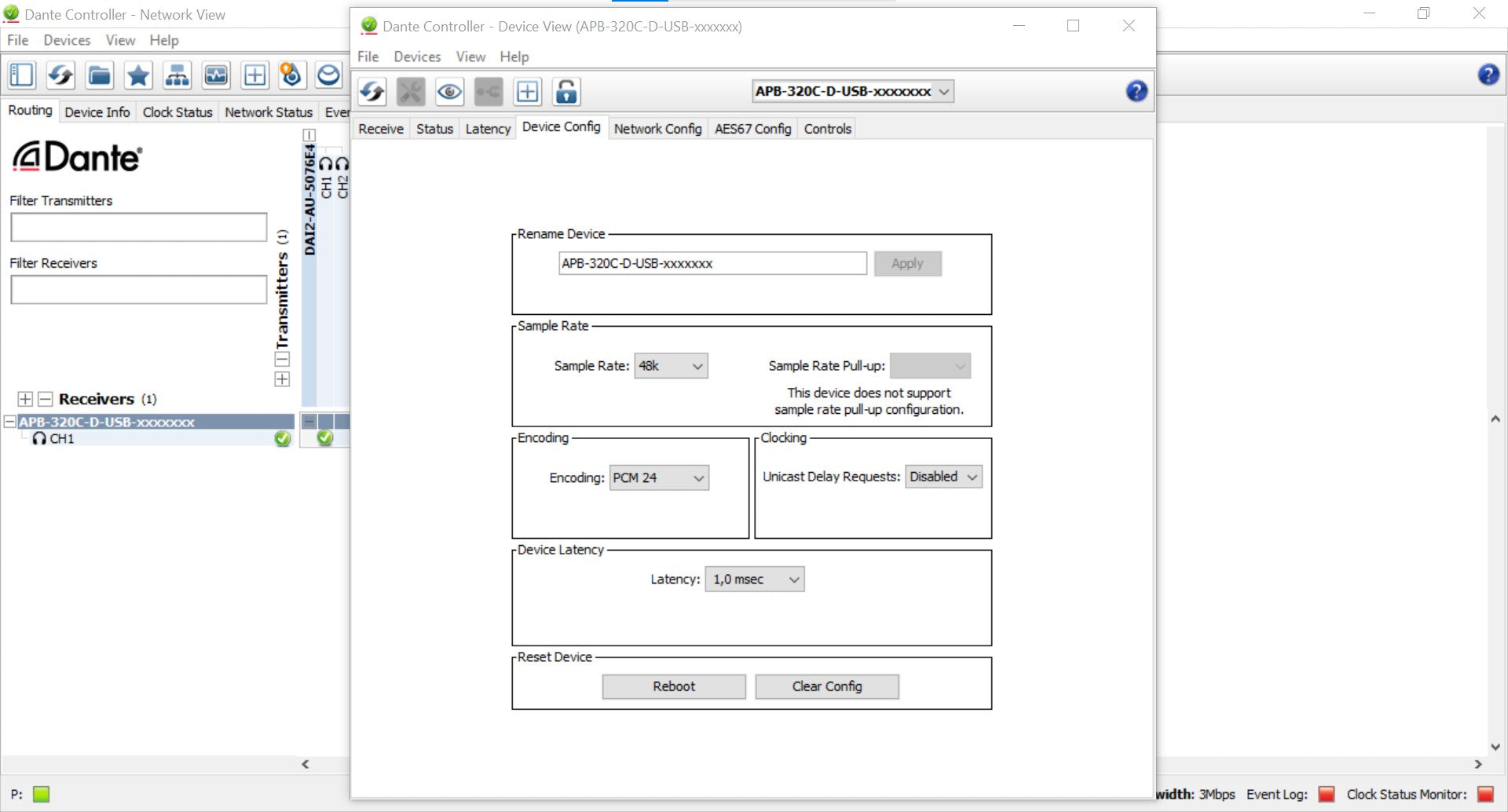 - 1 Kanal DANTE Eingang - RJ45 ethercon