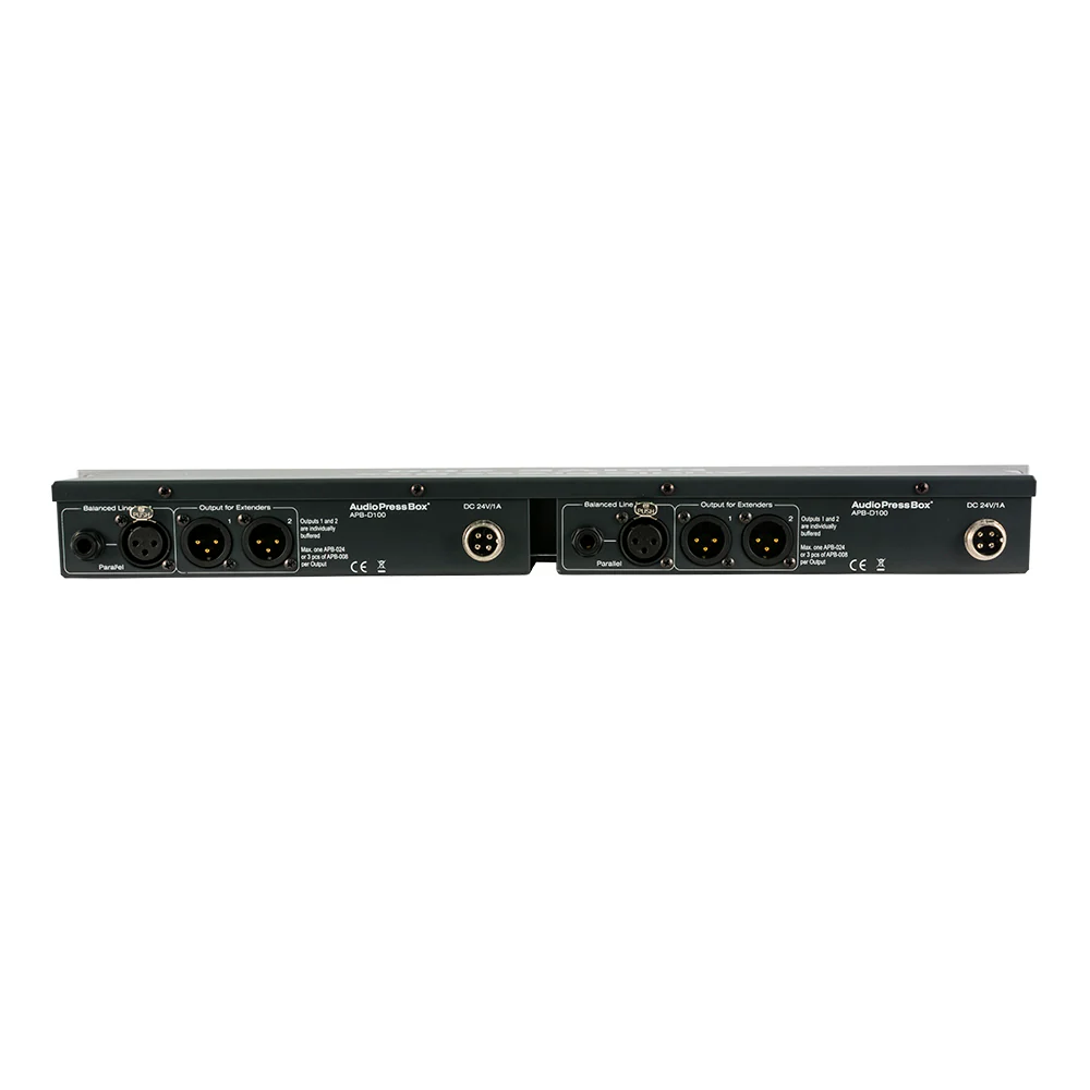 | Type | 2 IN/ 4 Drive OUT for 12xAPB 8-Output expanders or 4xAPB 24- Output expander Note: Total capacity:96 Line/Mic outputs (12x APB-008 xx-EX or 4x APB-024 R-EX) |
